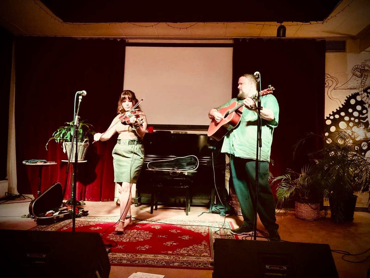 Polyphonic vocals, Guitar, violin, whistles, trumpet, harmonica, melodica, ukulele, cheerful, happy, occasional sing-alongs, bluesy, folky, old-time country!